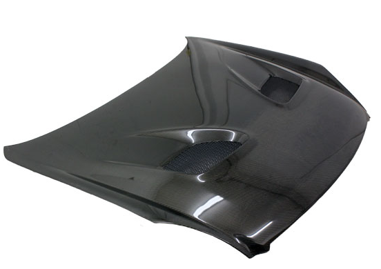 2003-2006 Nissan 350Z 2Dr Terminator 2 Carbon Fiber Hood. VIS Carbon Fiber Hoods and Trunks are made from 100% ISO-certified, Grade-A carbon fiber material. All VIS Carbon Fiber Hoods and Trunks are manufactured using a two-part construction design. The top layer is composed of carbon fiber material bonded to the hood surface with high-grade epoxy resin, and finished with an ultra-clear (Poly Shield), UV-protective polyurethane coating for a high gloss finish. A one-piece, smooth underside shell is fused to the top layer enhancing the product’s structural integrity. The edges are smoothed by hands to insure good quality finish all around. In 2014, we further improved on this manufacturing process by introducing the Vacuum Infusion Process (V.I.P.), which utilizes a single-mold vacuum to produce parts that are 10-20% lighter than before while improving durability. We are transitioning our full spectrum of carbon parts to use the VIP process so that our customers can enjoy these improved products without incurring a huge cost increase.