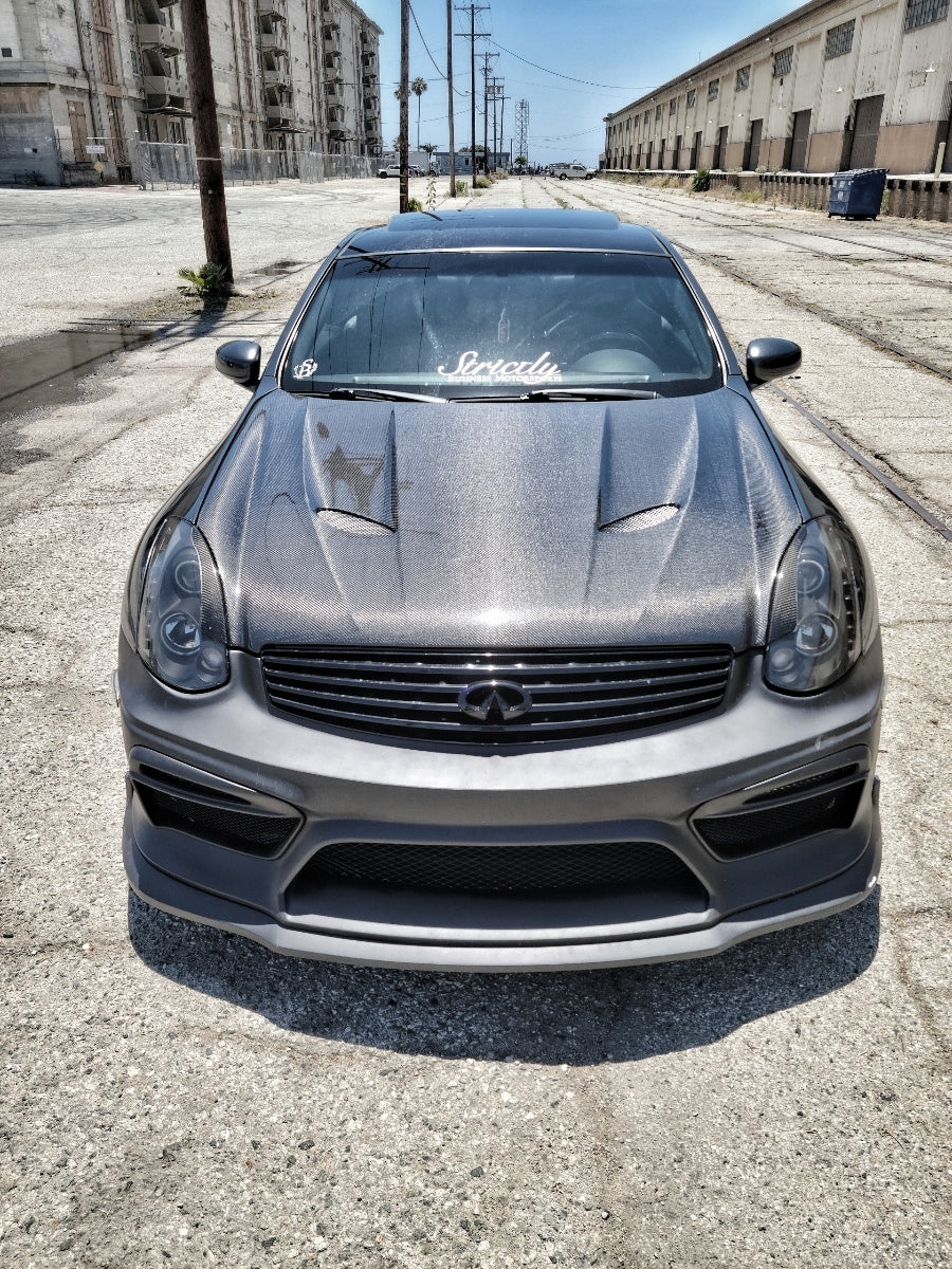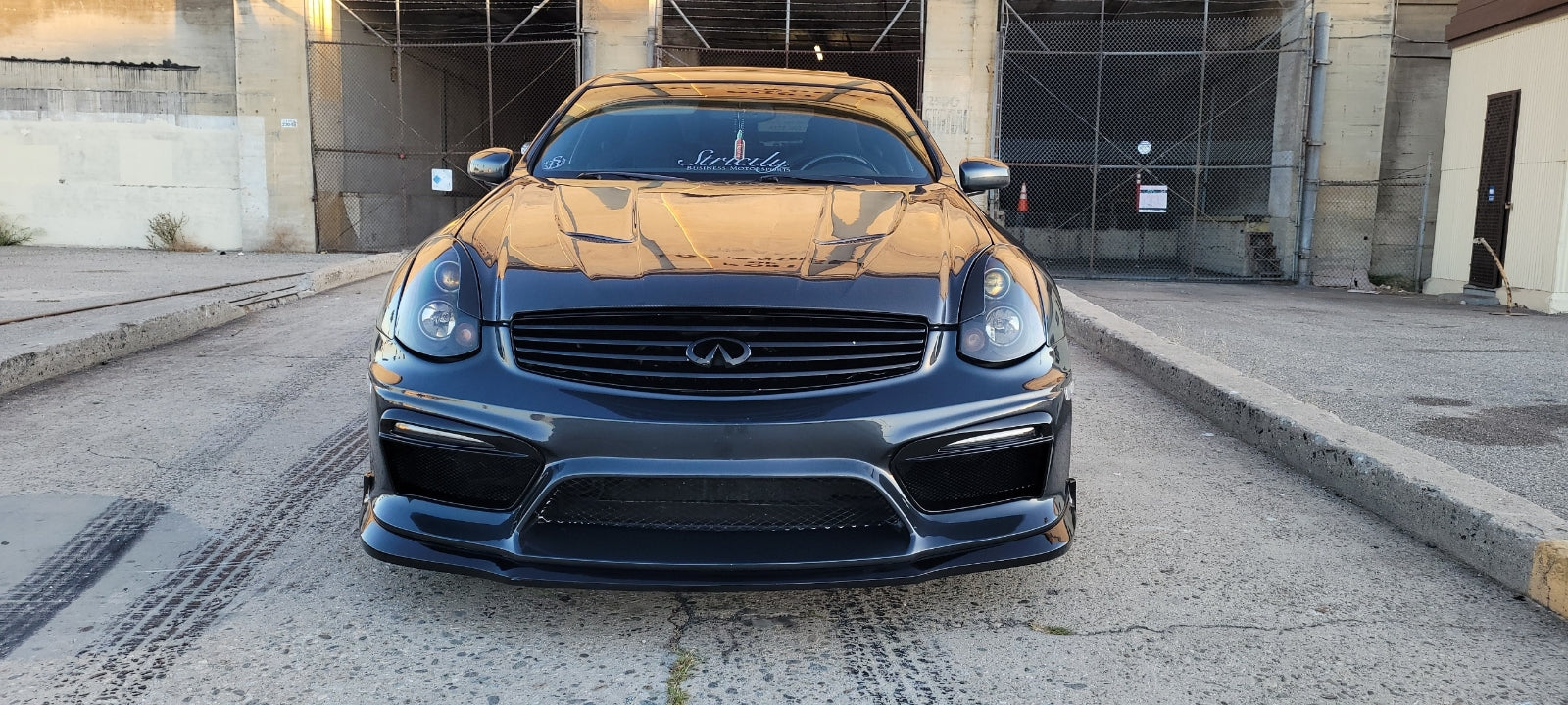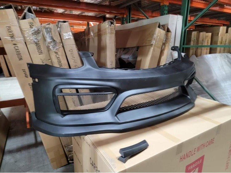 This item will fit 03-07 G35 coupes only. Available in Fiberglass only, with special order optional Carbon Fiber lip. 2” of the bash bar may need to be cut on each side for proper fitment. (2014-2016 Porsche Cayman DRL lights not included) trimming of the bash bar required to adapt DRL lights*. Professional installation is always advised.