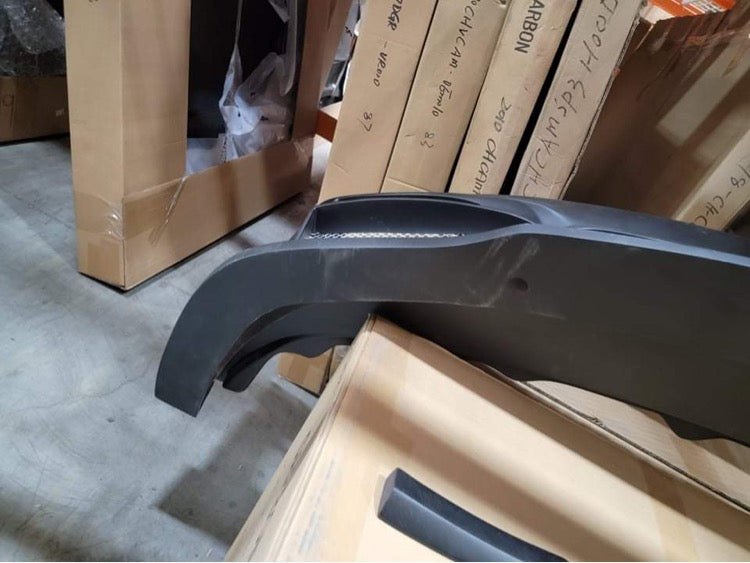 All fiberglass Body Kits; bumpers, Lips side skirts, spoilers, and hoods are made out of a high quality fiberglass. Professional installation required. Picture shown is for illustration purpose only. Actual product may vary due to product enhancement. Modification of part is required to ensure proper fitment. Test fit all Body Kit parts before any modification or painting. Accessories like fog lights, driving lights, splitter, canards, add-on lip, intake scoops, or other enhancement products are not included unless specified in the product description. Intended for OFF ROAD use only.