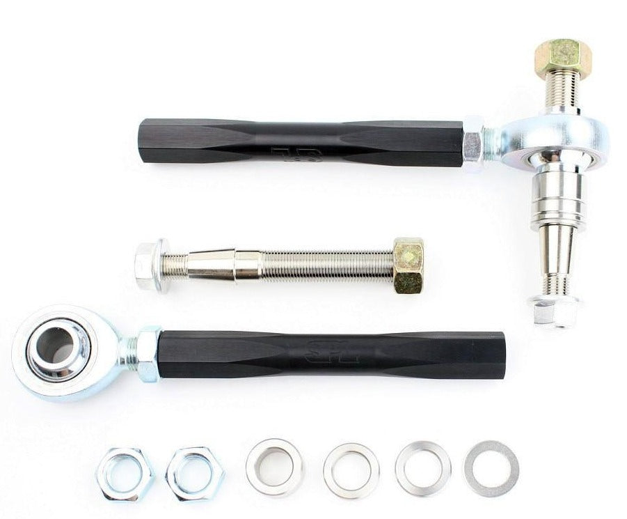 SPL Parts PRO Front Outer Tie Rod Ends (TRE) allow for bumpsteer adjustment by allowing the tie rod end pivot to be relocated with the use of spacers. Reduced bumpsteer results in smoother steering and quicker lap times.