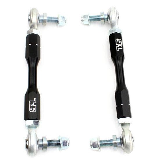 Our SPL PRO rear endlinks (AKA droplinks) for the Infiniti Q50 and Q60 feature massive Teflon lined FK ½" bearings to provide the highest load capacity for use with stiffer aftermarket sway bars. Custom heat treated chromoly high misalignment studs connect to the sway bar and offer extreme articulation capability (65deg) to prevent the endlink from binding when used with different adjustment holes on aftermarket sway bars.