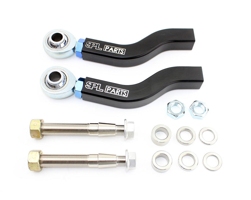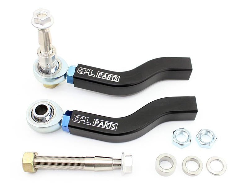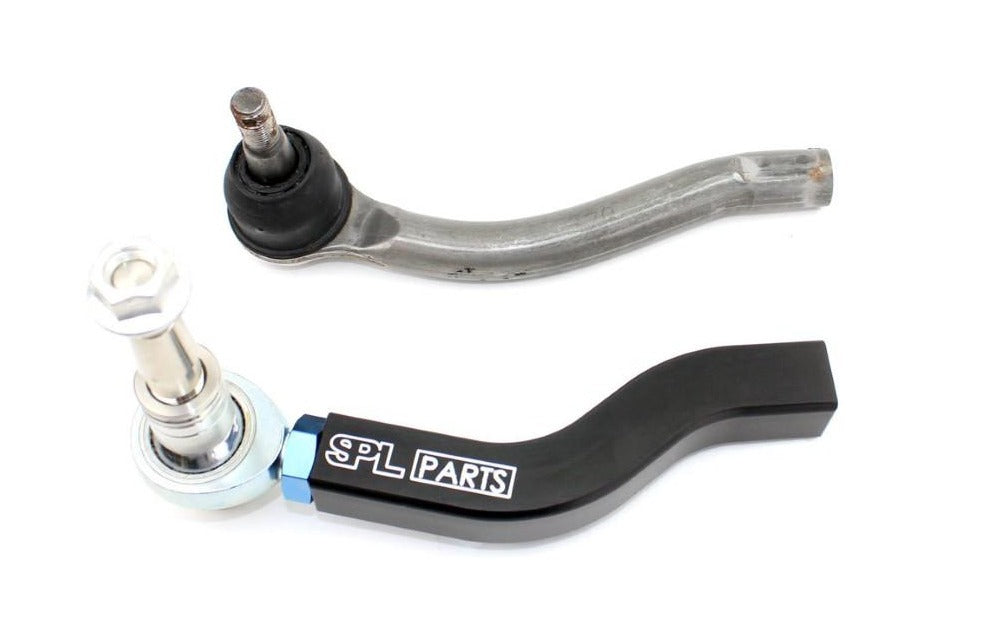 SPL Parts Titanium Series Front Outer Tie Rod Ends (TRE) allow for bumpsteer adjustment by enabling the tie rod end pivot to be relocated with the use of spacers. Reduced bumpsteer results in smoother steering and quicker lap times. On cars that are lowered significantly, relocating the pivot point will also keep the tie rod end from binding, thereby preventing the inner tie rods from breaking or bending when racing. High Misalignment Rod Ends from FK are utlized to further ensure full articulation and a crisp steering response. Machined to match the curvature of the OEM outer tie rod ends, our kit will ensure fitment with wide wheels and tires.