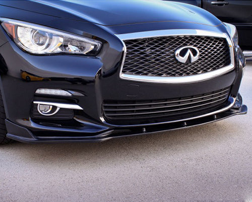 The Infiniti Q50 Sedan has some aggressive front styling in the fascia, and the STILLEN Front Splitter adds depth and a fantastic look to the Q50. STILLEN Splitters are made from durable and resilient polyurethane, and increase down force to the front wheels as well as improving the look, similar to a lip spoiler.An added benefit is an increase in airflow through the radiator, a byproduct of the high pressure zone created above the splitter as it slices through the air.The Q50 Front Splitter comes painted in a matte black finish, ready to be installed, but you can also have it painted any color desired, some prefer to have their splitters paint matched, gloss black, etc. the choice is up to you!One of the easiest upgrades you can make to your Infiniti Q50 with striking results!